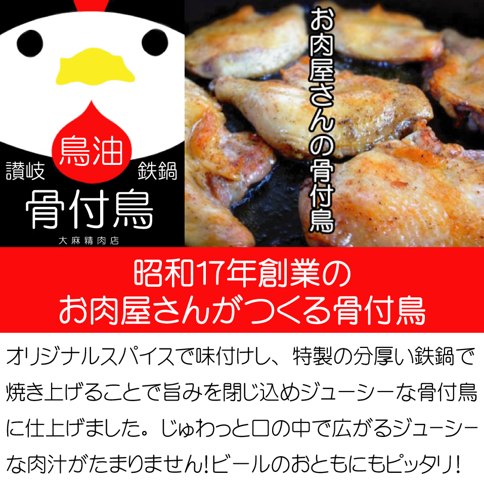 讃岐鉄鍋骨付鳥(鳥油付き)【大麻精肉店】