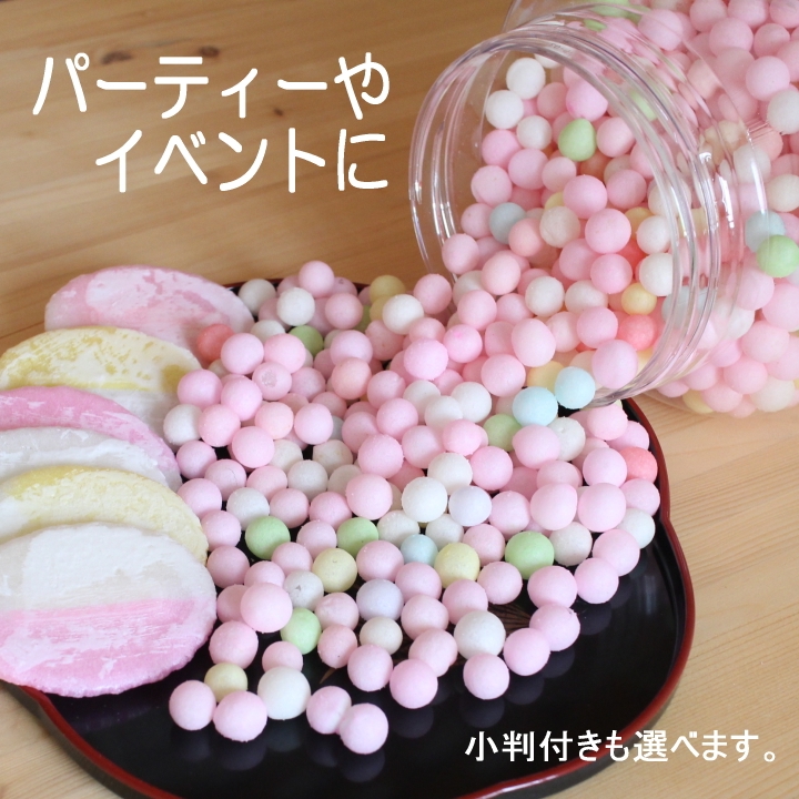 たっぷり入っているので、大勢で口いっぱいに頬張ったり、アイスやケーキにトッピングしたり、思う存分おいりを楽しんで下さい♪