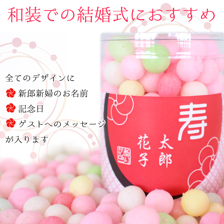 結婚式のプチギフトにご好評をいただいている、讃岐のみとよ・マルシェ限定“名前入り”おいり。